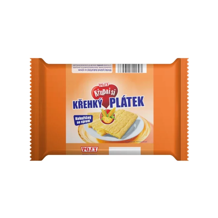 kukuřičná mouka 96 %, sýrový prášek 1,5 % (sušená SYROVÁTKA, sušený SÝR 38 %, kvasnicový extrakt, jedlá sůl, tavicí sůl: fosforečnany sodné; aroma), jedlá sůl, kmín.