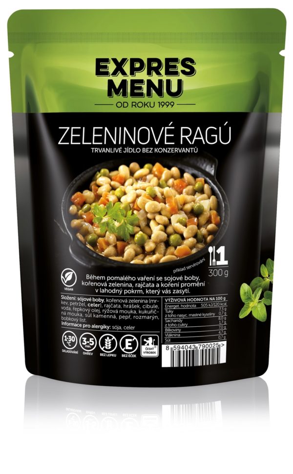 Složení: sójové boby, kořenová zelenina (mrkev, petržel, celer), rajčata, hrášek, cibule, voda, řepkový olej, rýžová mouka, kukuřičná mouka, sůl kamenná, pepř, rozmarýn, bobkový list.